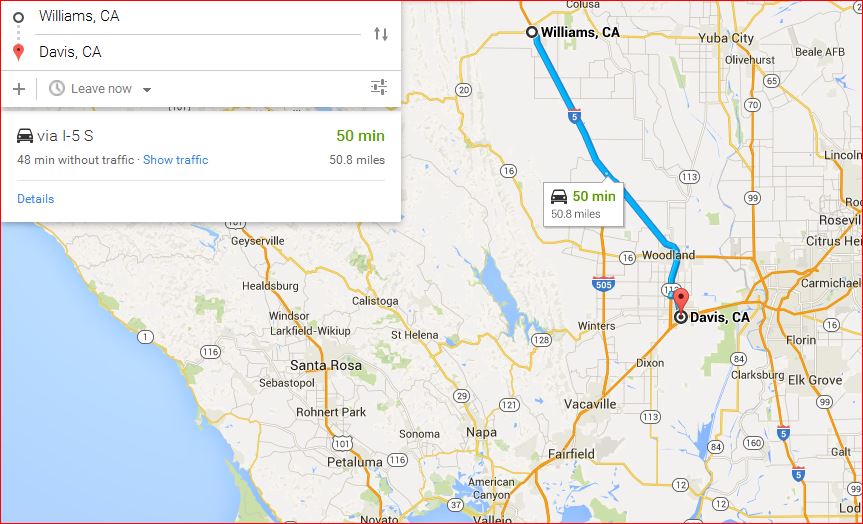 Driving from Davis to Williams California